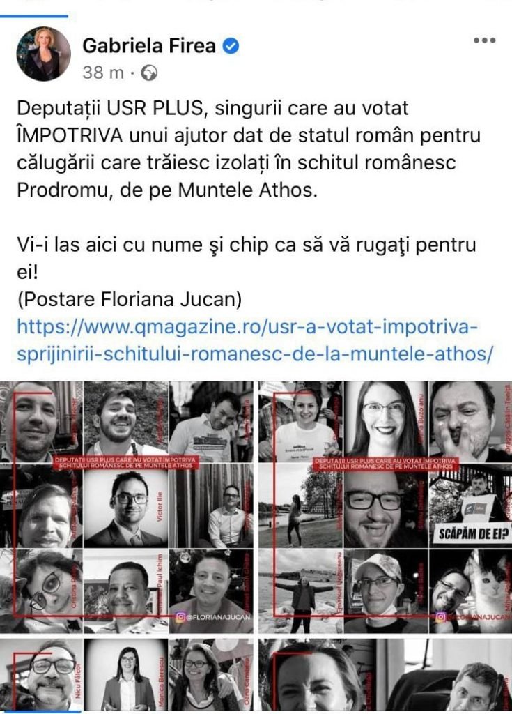 În contextul în care toată țara își arată preocuparea pentru buget și oamenii se așteaptă la responsabilitate, am aflat că am apărut pe lista neagră a dnei Firea din cauza votului meu exprimat contra măririi sumei alocate Schitului Prodromu de pe Muntele Athos, de la suma de 250.000 euro la 960.000 euro.