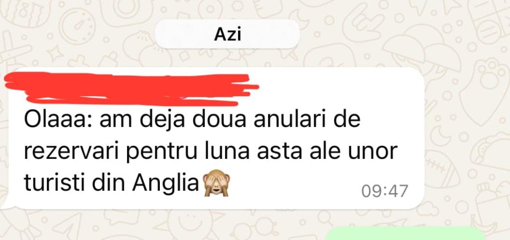 Uitați mai jos un exemplu minor despre cum încep sa se resimtă deja efectele unui vot care a creat senzația de risc și instabilitate. Este un mesaj de la un prestator de servicii de turism, care în decurs de câteva zile are deja mai multe anulări.